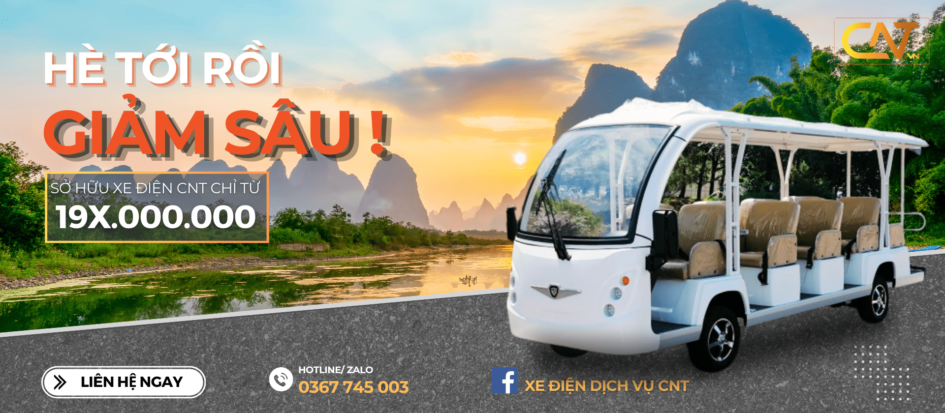 CNT Việt Nam là đơn vị hàng đầu tại Việt Nam chuyên cung cấp giải pháp xe điện toàn diện, từ các dòng xe nâng điện, xe ô tô điện du lịch, xe golf đến các phụ kiện như bánh xe, bình ắc quy và dịch vụ hậu mãi bao gồm sửa chữa, bảo trì, cho thuê. Chúng tôi luôn tự hào mang đến sản phẩm chất lượng cao và dịch vụ chuyên nghiệp, đáp ứng mọi nhu cầu của khách hàng trong các lĩnh vực công nghiệp, du lịch và vận tải.